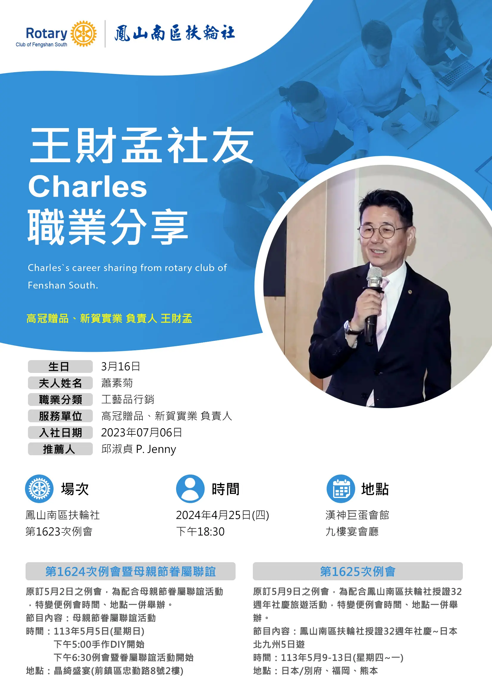 例會時間:每週四下午18:30